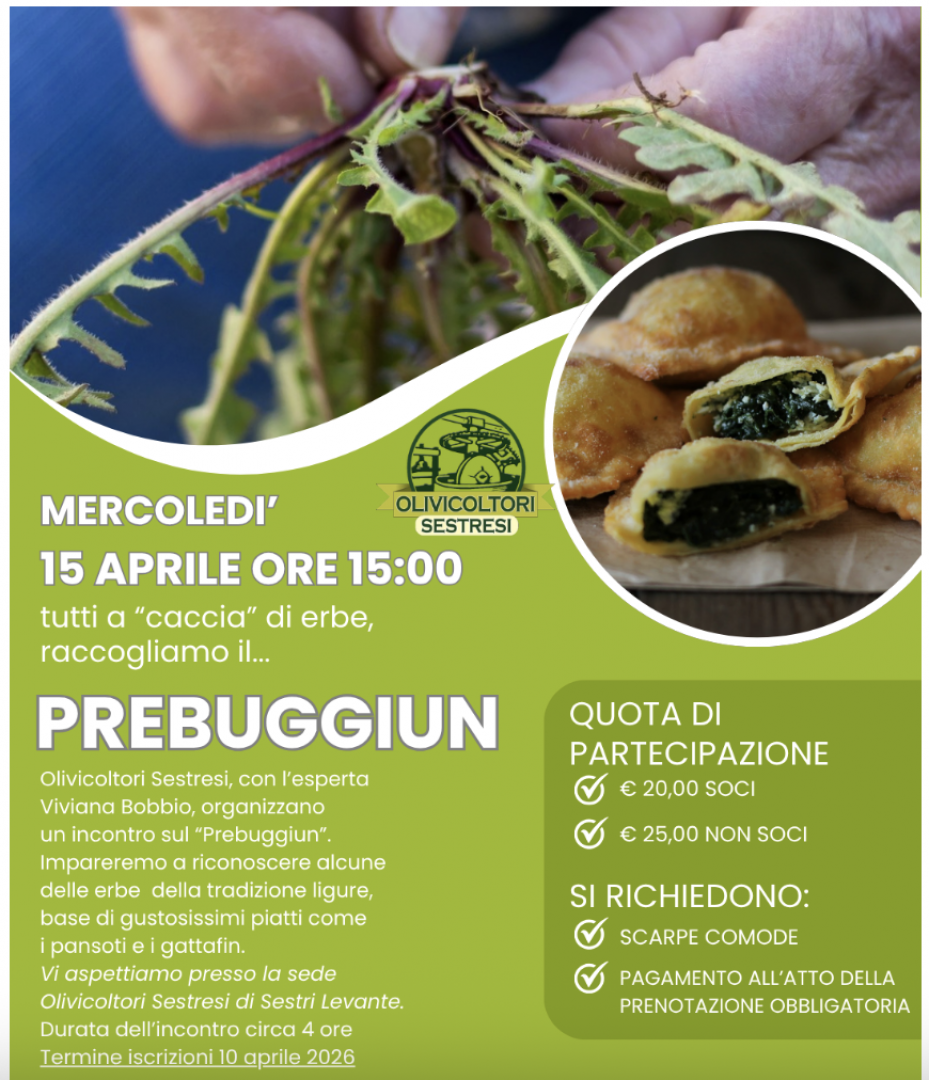 Il Prebuggiún non è solo un mix di erbe, è una vera e propria filosofia della cucina ligure che profuma di terra e di storia. Unisciti a noi per imparare a riconoscere le varietà spontanee del nostro territorio e scoprire come trasformare semplici doni della natura in ingredienti preziosi per la tavola. Un incontro dedicato a chi vuole riscoprire i sapori autentici della tradizione e il valore della biodiversità locale.