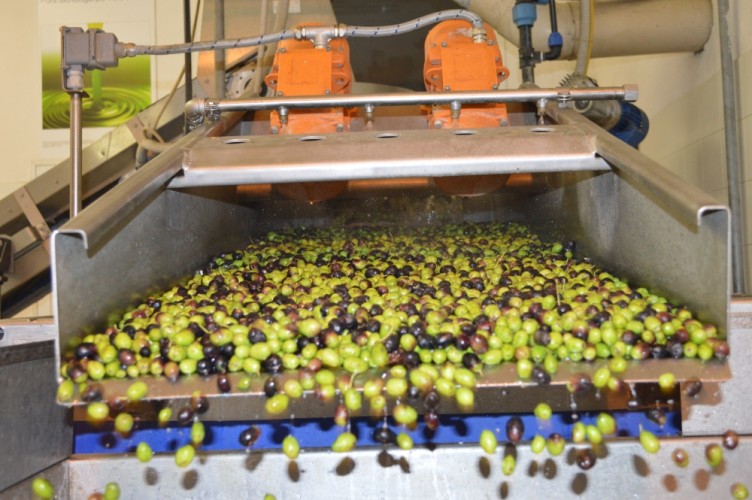 Accertatene quindi la validità e lo stato, una volta pesate, le olive vengono immesse all'interno di un macchinario che ne asporta le parti leggere estranee (foglie, rametti, residui della raccolta etc.) e la lavatrice le ripulisce dalle impurita' per mezzo di acqua corrente.